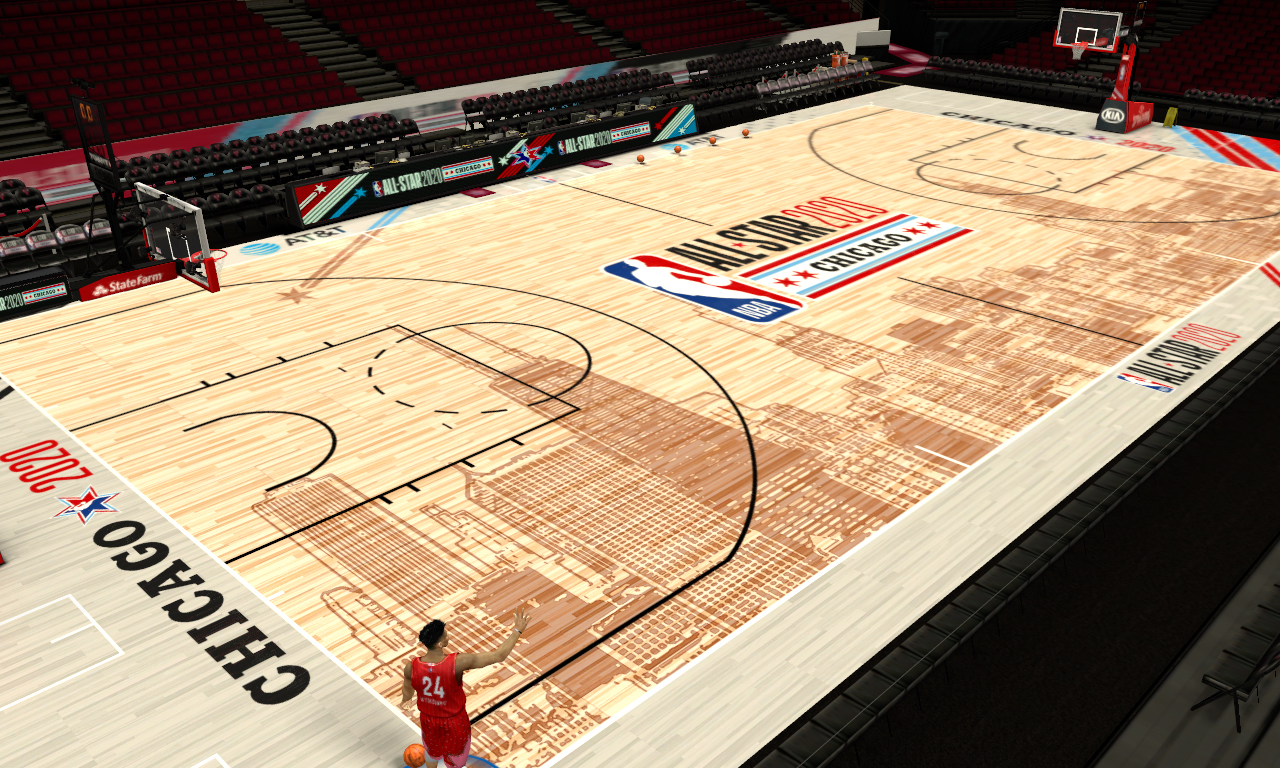 This adds the 2020 NBA All-Star Game court and dornas.